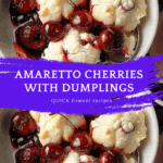 Amaretto cherries with dumplings is a cozy, elegant dessert made with sweet-tart cherries simmered in an almond-scented syrup and topped with fluffy dumplings. The warm notes of Amaretto liqueur and tender dumplings make it a perfect comfort treat.