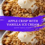 A cozy and classic dessert featuring tender baked apples spiced with cinnamon and nutmeg, topped with a crunchy oat crumble and served warm with creamy vanilla ice cream.