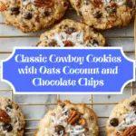 These Best Cowboy Cookies are a delightful combination of chewy oats, sweet coconut, crunchy pecans, and gooey semi-sweet chocolate chips. Perfectly baked to a light golden edge and topped with extra chocolate chips, they are the ultimate crowd-pleaser for cookie lovers looking for a rich, hearty treat.