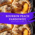 Bourbon Peach Pandowdy is a rustic Southern dessert featuring juicy, spiced peaches with a splash of bourbon, all baked beneath a flaky crust that’s pressed into the bubbling fruit. It’s warm, gooey, and loaded with comfort.