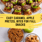 You can keep any leftover Caramel Apple Pretzel Bites Recipe in an airtight container at room temperature for up to two days. Keeping them fresh ensures the pretzel stays crisp and the caramel maintains its perfect chew.
