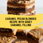Decadent Caramel Pecan Blondies featuring a rich brown sugar batter layered with a creamy caramel and crunchy pecan filling. These blondies bake up golden and gooey, perfect for a sweet treat or dessert.