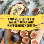 This Caramelized Fig and Walnut Bread is a moist, flavorful quick bread featuring tender caramelized figs layered throughout a spiced walnut batter. Enhanced with warm cinnamon and cardamom spices and topped with crunchy walnuts and sparkling sugar, this loaf is perfect for breakfast or an elegant snack. It is served with a luscious whipped rosemary honey butter that adds a herby sweet finish, making it a delightful treat for any occasion.