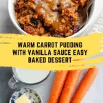 This comforting Carrot Pudding is a warm, spiced baked dessert blending grated carrot, potato, apple, and raisins with fragrant cinnamon, nutmeg, and allspice. Baked to tender perfection and served with a rich homemade vanilla sauce, it offers a delightful combination of sweet and earthy flavors perfect for cozy gatherings or holiday meals.