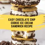 Delicious homemade Chocolate Chip Cookie Ice Cream Sandwiches featuring soft, buttery chocolate chip cookies filled with creamy vanilla ice cream and dipped in mini chocolate chips. Perfect for a refreshing and indulgent dessert that’s easy to make and sure to impress.