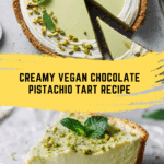When your tart is set, it’s time to make it look as lovely as it tastes. Drizzle some melted vegan white chocolate over the top, sprinkle with chopped pistachios for that irresistible crunch, and add fresh mint leaves for a refreshing pop of color. Your Chocolate Pistachio Tart Recipe is now ready to wow!