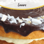 This Coconut Boston Cream Pie features a moist yellow cake infused with coconut milk and cream, layered with a rich coconut custard, and topped with silky dark chocolate ganache. Toasted coconut flakes add a crunchy, tropical finish to this elegant dessert.