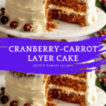 Cranberry-Carrot Layer Cake is a moist, spiced cake filled with shredded carrots, tart cranberries, and a hint of orange zest, layered with rich cream cheese frosting. A festive dessert perfect for holidays and special occasions.
