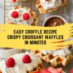 This easy croffle recipe combines the flakiness of a croissant with the crispiness of a waffle. Using refrigerated croissant dough cooked in a waffle iron, this versatile treat can be topped with powdered sugar, fresh fruit, Nutella, or whipped cream for a delicious breakfast or snack in just minutes.