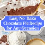 - Serve: Slice and serve chilled. Enjoy every rich, creamy bite of this no-bake chocolate pie!