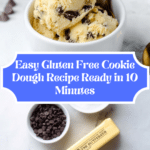 A quick and easy recipe for gluten free cookie dough that’s safe to eat raw. This treat features a buttery, sweet dough loaded with mini chocolate chips and uses heat-treated gluten free flour to ensure safety and deliciousness. Perfect for satisfying cookie cravings without baking cookies.