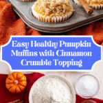 These Healthy Pumpkin Muffins are a delicious and nutritious twist on a classic fall favorite. Made with pumpkin puree, Greek yogurt, and a touch of monk fruit sweetener, these muffins are moist, flavorful, and perfectly spiced with cinnamon, nutmeg, and cloves. They feature a crunchy crumb topping that adds a delightful texture contrast. Ideal for a wholesome breakfast or snack, these muffins are gluten-free friendly when using gluten-free flour alternatives and lower in sugar thanks to natural sweetener substitutions.