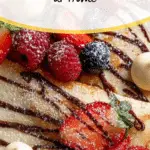 - Serve: Serve the crêpes warm. They can be rolled burrito-style with ends tucked in or folded into quarters. Garnish with icing sugar, berries, whipped cream, melted chocolate, or Nutella as desired.