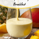 A refreshing and tropical Mango Pineapple Smoothie made with frozen mango, pineapple, banana, coconut milk, Greek yogurt, and vanilla protein powder. This creamy smoothie is quick to prepare, naturally sweet, and packed with tropical flavors, perfect for a healthy breakfast or a post-workout snack.