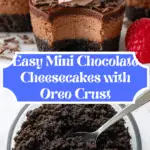 Indulge in these Mini Chocolate Cheesecakes, featuring a rich Oreo crust and a luscious chocolate-infused cream cheese filling. Topped with silky chocolate ganache and fluffy cocoa whipped cream, these bite-sized treats are perfect for any chocolate lover’s dessert cravings.