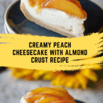 This Peach Cheesecake is a no-bake, creamy dessert featuring a crunchy almond crust, a luscious cream cheese and sweetened condensed milk filling mixed with tender, peeled peach slices, and topped with glossy fresh peaches glazed with apricot jam. Perfectly chilled overnight, this refreshing cheesecake combines nutty crust texture with sweet, fruity freshness, making it an elegant and delightful treat for any occasion.