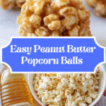 Delicious and easy-to-make peanut butter popcorn balls combining sweet honey, creamy peanut butter, and gooey marshmallows, perfect for a quick snack or party treat.