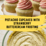 Light and fluffy pistachio cupcakes topped with creamy, fresh strawberry buttercream frosting, delivering a delightful combination of sweet, nutty, and fruity flavors in every bite. Perfect for spring or any festive occasion.