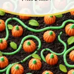 Fill a piping bag fitted with a round tip (or use a Ziploc bag with the corner cut off) with the colored frosting. Pipe swirling vines around each pumpkin candy, giving your patch that authentic, garden-like detail.