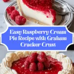 This Raspberry Cream Pie features a buttery graham cracker crust filled with a luscious cream cheese and whipped cream filling, topped with a fresh, sweetened raspberry sauce. Perfectly chilled, this easy no-bake dessert combines creamy textures with vibrant fruit flavors for a refreshing and elegant treat.