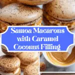 Delight in these Samoa Macarons, featuring delicate almond-cocoa shells filled with a luscious caramel-coconut filling reminiscent of the famed Samoa cookie flavors. Perfectly crisp on the outside and chewy inside, these macarons combine the elegance of classic French technique with the joyful taste of caramel and toasted coconut.