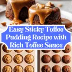 A rich and indulgent Sticky Toffee Pudding featuring moist date-infused muffin cakes served with a warm, luscious toffee sauce. Perfect for dessert lovers who enjoy a classic British treat with a soft texture and deep caramel flavors.