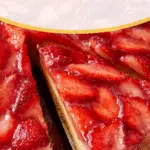 - Make the Topping: In a small bowl, whisk together sugar and cornstarch. Sprinkle this mixture evenly over the melted butter in the pan. Toss the sliced strawberries with fresh lemon juice and spread them evenly over the sugar mixture, allowing some overlap.