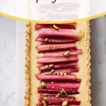 It’s best enjoyed chilled, but if you prefer the rhubarb a little warmer, briefly warm slices in a low oven or microwave for 10-15 seconds. Avoid reheating the entire tart as the custard may soften too much and become runny.