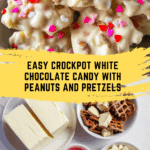 This White Chocolate Valentine’s Crockpot Candy combines crunchy peanuts and salty pretzels with creamy melted white chocolate and almond bark, all cooked conveniently in a crockpot. Topped with festive heart sprinkles and chilled to set, this easy-to-make treat is perfect for Valentine’s Day gifting or sharing at parties, providing a delightful blend of sweet and salty flavors with a creamy texture.