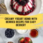 This refreshing Yogurt Bomb with Berries is a creamy, tangy dessert made by combining Greek yogurt with whipped heavy cream, sweetened and flavored with vanilla and lemon juice. The mixture is then gently strained to create a firm, luscious mousse-like treat that is served chilled with sweetened thawed mixed berries. A perfect light dessert to enjoy any time.